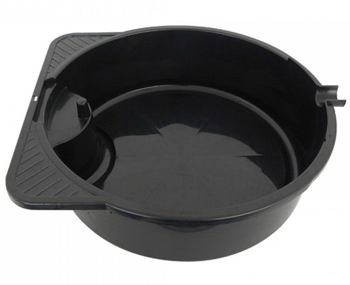 Rugalmas és erős műanyagból készült olajleeresztő tál, 8 liter kapacitással.