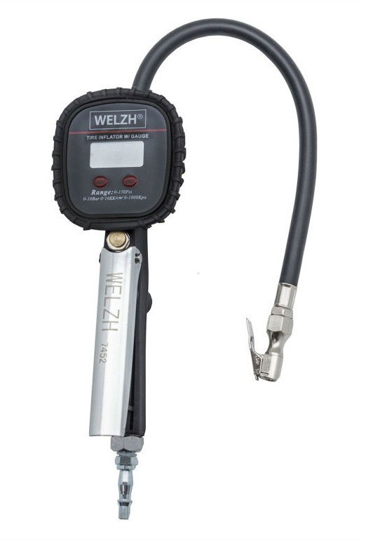 Welzh Werkzeug 7452-WW digitális gumiabroncs nyomásmérő, kerékfúvató, 0-10 bar