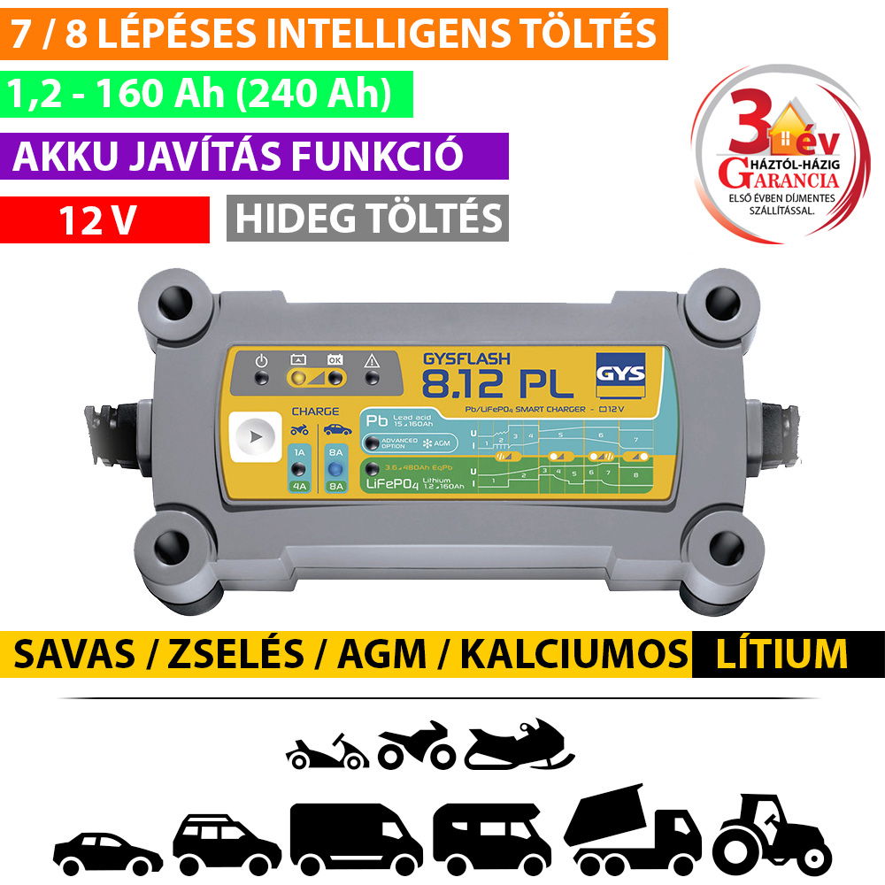 GYSFLASH 8.12 PL akkumulátor töltő